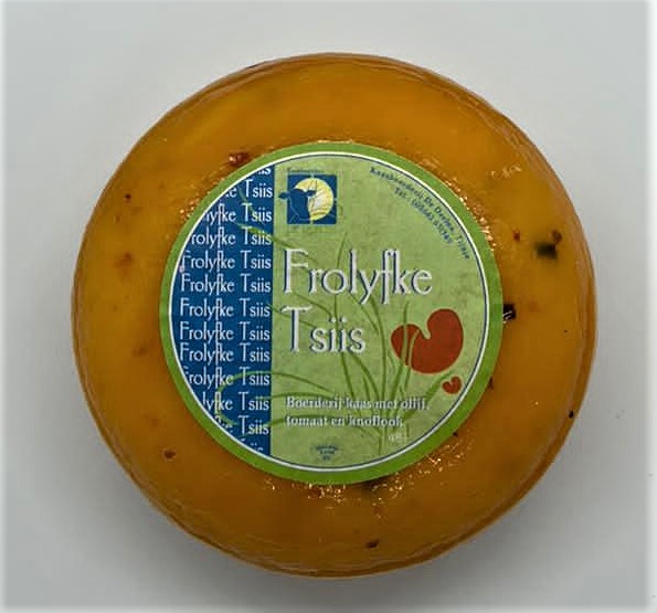 Heerlijke kaas met olijf, tomaat en knoflook. Gemaakt van de eigen melk van de boerderij. Mild, fris en zacht kruidig van smaak.