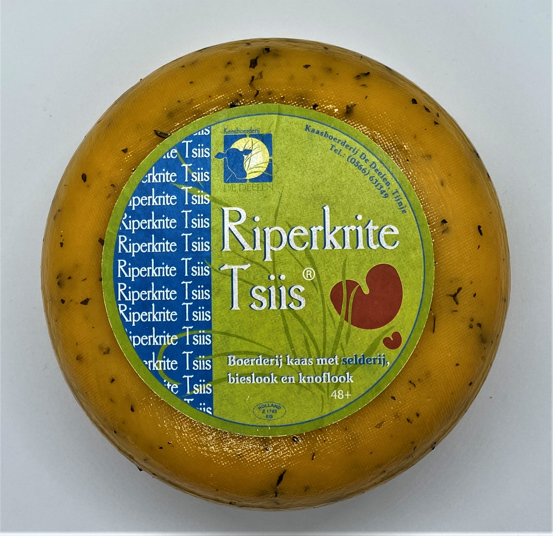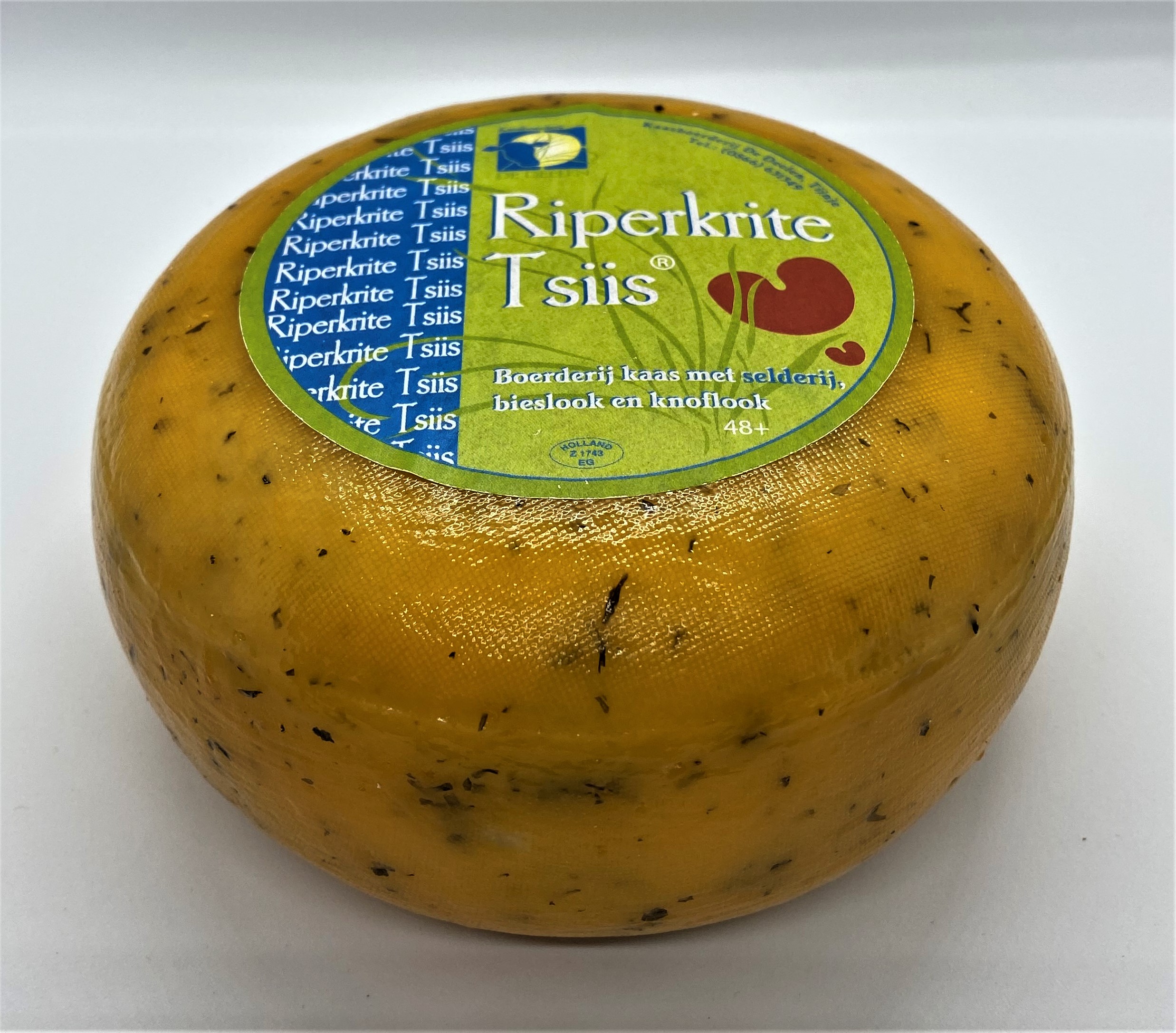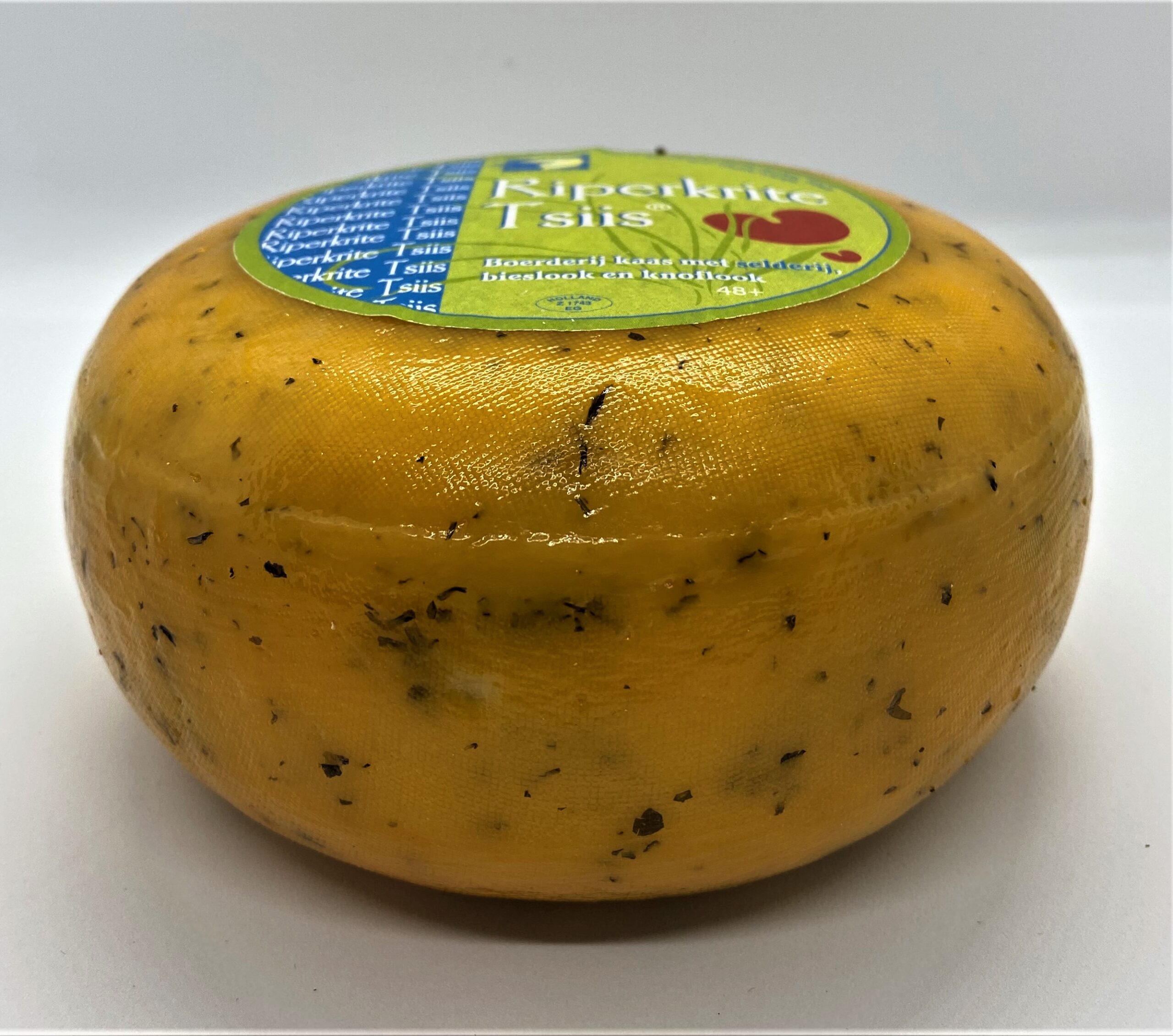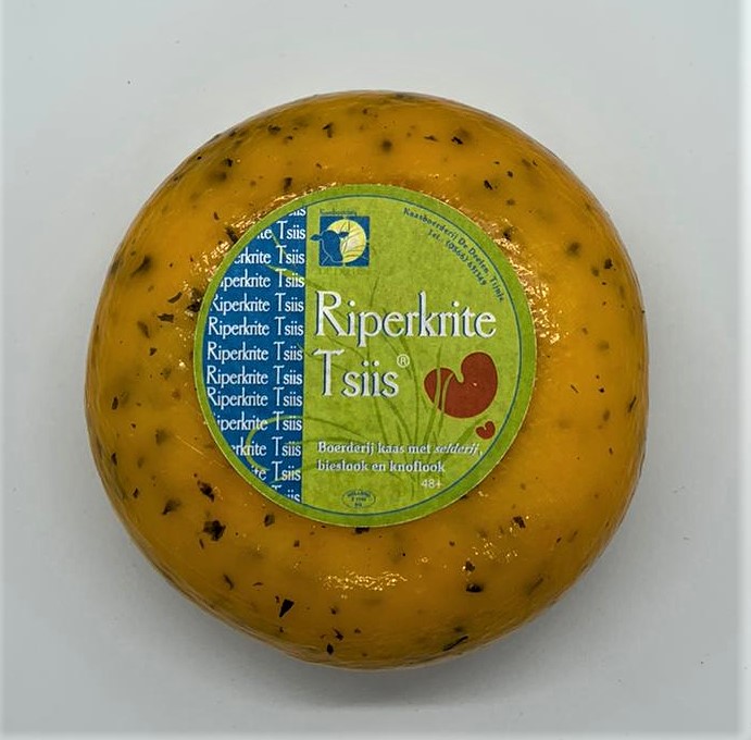 Heerlijke kaas met knoflook, bieslook en selderij. Gemaakt van de eigen melk van de boerderij. Mild, fris en zacht kruidig van smaak.